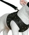 Offrez à votre chien un style affirmé avec ce harnais en cuir clouté. Conçu pour allier robustesse et confort, il est renforcé par des rivets métalliques assurant une résistance exceptionnelle à la traction. Idéal pour les chiens puissants ou dynamiques, ce harnais garantit sécurité et élégance lors de vos promenades.