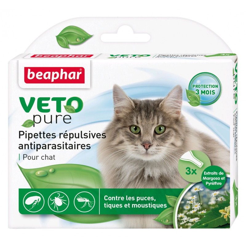 Pipettes répulsives contre les puces, tiques et moustiques pour chat - 3 x 1 ml..