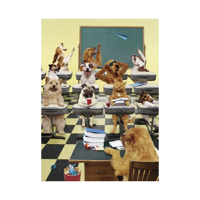 Apportez une touche d'humour irrésistible à votre intérieur avec ce tableau photo sur toile représentant une classe d'école d'animaux. Plus originale qu'un simple poster, cette toile imprimée montée sur un châssis bois robuste est la pièce idéale pour une décoration décalée. Avec ses dimensions généreuses de 50x70 cm, elle séduira tous les passionnés de chiens.