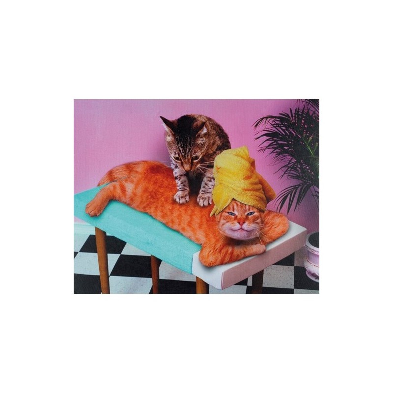 Apportez une atmosphère de détente et d'humour à votre maison avec ce tableau photo sur toile illustrant un salon de massage pour animaux. Plus originale qu'un poster, cette toile imprimée montée sur châssis est la pièce idéale pour une décoration zen et décalée. Ses dimensions de 50 x 40 cm raviront tous les amoureux de chats.