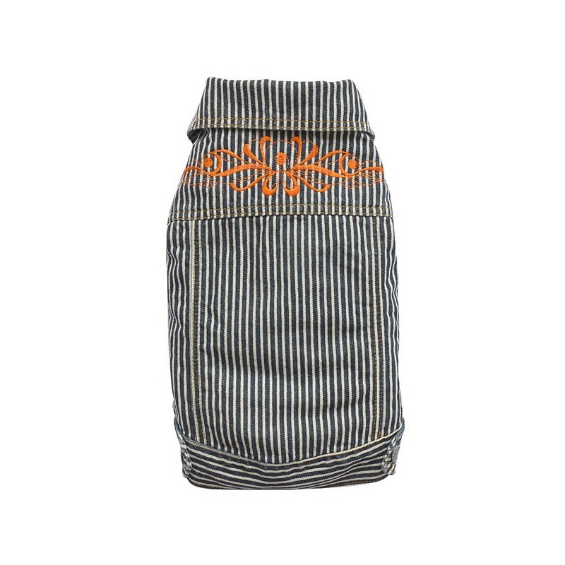 Blouson en jean à rayures pour chien avec ornement au dos